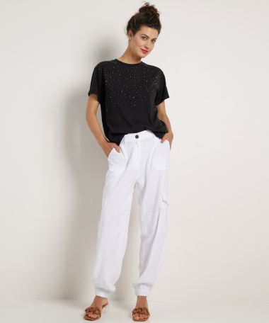 Een zwart t-shirt past bij bijna elke kleur broek! Voor een klassieke combinatie ga je voor blauw of grijs. Liever stoer? Kies een zwarte broek of een leren legging. Mag het wat opvallender? Dan is een witte of felgekleurde broek ideaal voor een trendy contrast. Zelf inspiratie opdoen? Bekijk onze dames broeken.