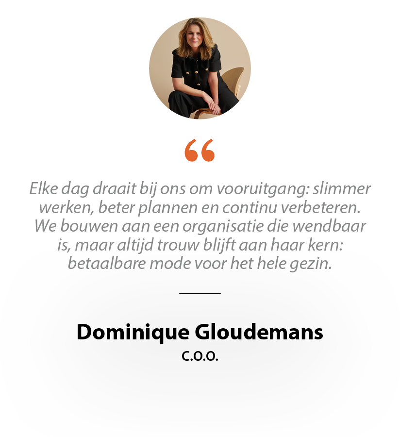 Onze ontwerpers volgen de laatste trends en vertalen ze naar draagbare collecties voor elke dag. Van frisse seizoenskleuren tot echte must-haves – er is altijd iets dat bij jou past. Goed gekleed gaan hoeft niet duur te zijn. Daarom vind je bij ons mode van nu, van hoge kwaliteit en voor eerlijke prijzen. Meer voor minder, dat is ons motto. De collecties zijn gemaakt voor het hele gezin. Of je nu iets zoekt voor je baby, je schoolgaande kinderen of voor jezelf, hier vind je kleding voor elk moment en elke gelegenheid.