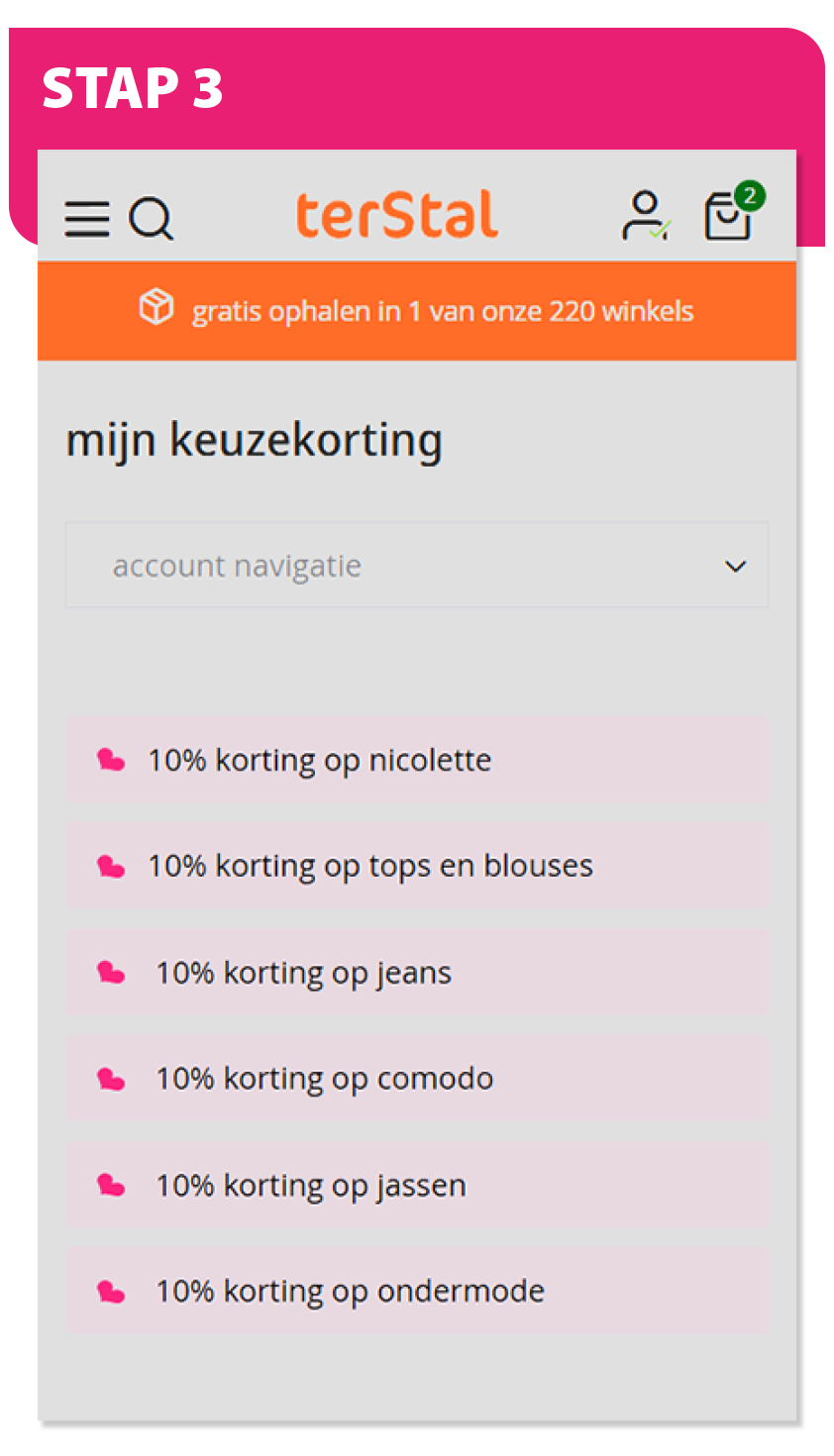 Selecteer twee keuzekortingen die bij je passen en sla je keuzes op.