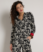 Top voor dames. De top is een oversized model en is voorzien van een kraag en lange mouwen. Verfraaid met een all-over bloemenprint op een zwarte kleur. De top heeft een wijdere pasvorm en draagt comfortabel dankzij de soepele stof.